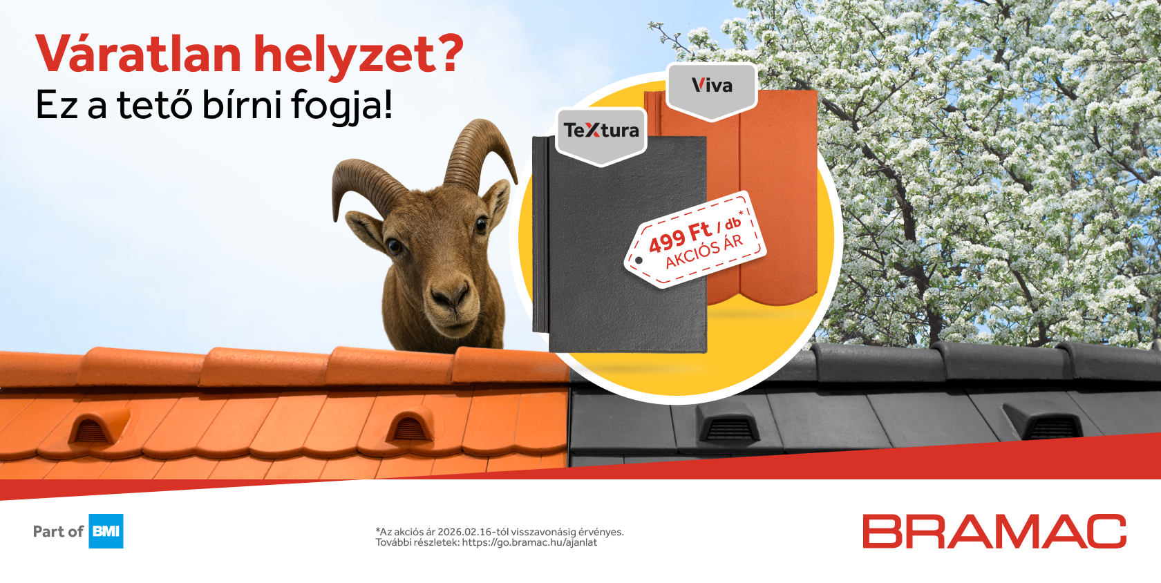 A tavasz beköszöntével nemcsak a természet újul meg, hanem az otthonok is. Az új Bramac Textura és Viva tetőcserepek most mindössze bruttó 499 Ft/db kedvezményes áron érhetők el!